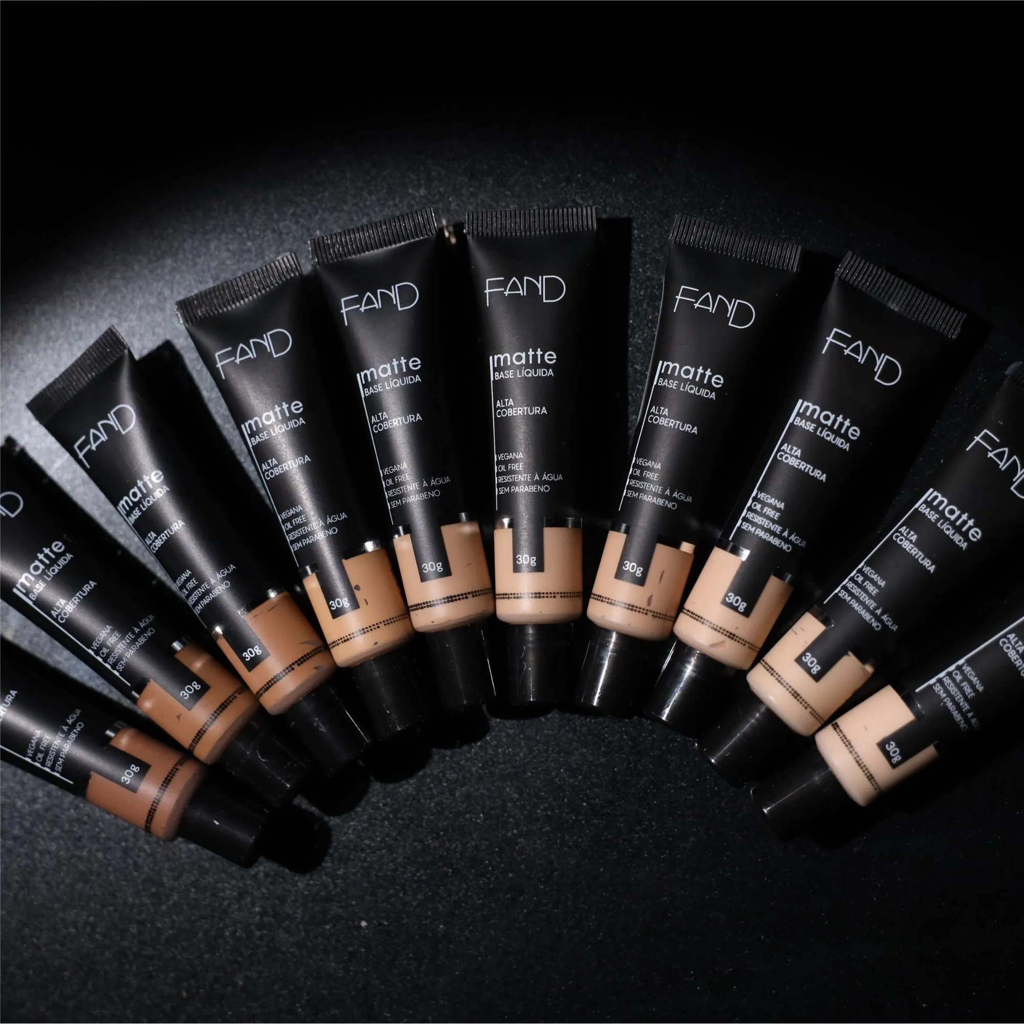 A Base Líquida Matte Fand é um produto que apresenta alta cobertura e acabamento aveludado que oferece resultado profissional com uma fórmula consciente e segura para todos os tipos de pele. É ideal para usar em ocasiões especiais pelo seu alto acabamento sem pesar na pele, e é muito indicada por maquiadores também!