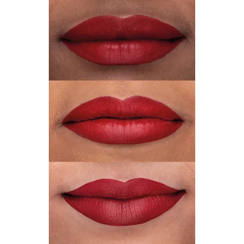 A cor Vermelho Hibisco, tom desenvolvido por e para todos os tons da pele brasileira, entrega o queridinho efeito skinny matte: sua fórmula de alta pigmentação é perfeitamente equilibrada com a textura ultrafina e o efeito mate aveludado, garantindo um conforto incomparável aos lábios, semelhante à uma pétala.