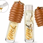 Gloss labial com efeito brilho intenso e hidratação inspirado no mel. Possui textura confortável, não pegajosa e deixa os lábios com aparência saudável e iluminada. Sua embalagem em formato de colmeia com argola dourada funciona como chaveiro, sendo prático para levar na bolsa, mochila ou usar como acessório.