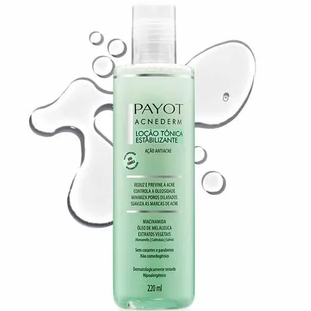 A Loção Tônica Facial Estabilizante é um produto com propriedades adstringentes. Ajuda a estabilizar e controlar a oleosidade excessiva das peles oleosas e/ou acneicas. Previne a formação de espinhas. Com óleo de melaleuca, ação microbiana, natural, extrato de sálvia, ação adstringente, auxiliar na redução da oleosidade da pele e extrato de calêndula, ação adstringente. É um produto suave, livre de parabenos e não contém fragrância. Produto Hipoalergênico. Dermatologicamente testado. A loção tônica também completa a remoção da maquiagem.
