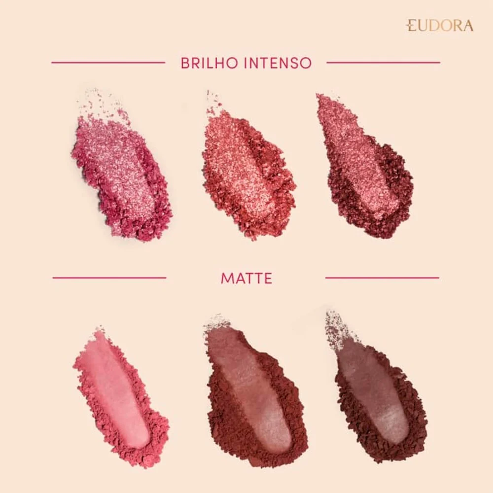 - Acabamentos Variados: contém 3 tons matte e 3 tons com muito brilho para você criar looks completos