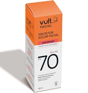 O Protetor Solar Antissinais FPS 70 Vult Facial, além de proteger a pele contra danos causados pelo sol, também reduz a aparência de linhas de expressão, deixando-a mais firme, com acabamento invisível.