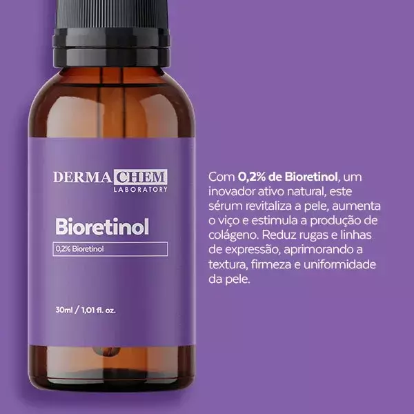 O Sérum Bioretinol da Dermachem é um tratamento facial desenvolvido para auxiliar na renovação da pele e melhorar a aparência dos sinais de envelhecimento. Sua fórmula contém Bioretinol, um ativo de origem vegetal que ajuda a estimular a renovação celular e a melhorar a textura da pele, promovendo um aspecto mais uniforme e revitalizado.
